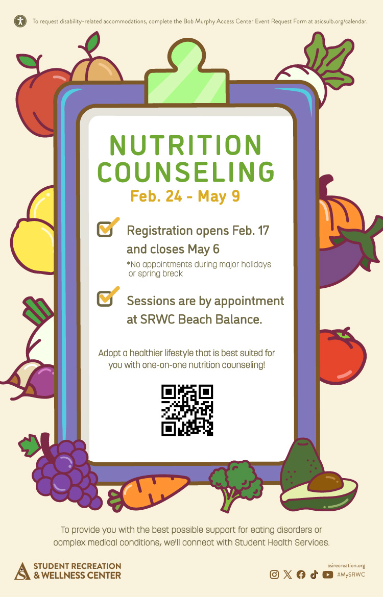 SRWC Beach Balance Nutrition Counseling A well-balanced diet plays an important role in maintaining our health. Healthy diets not only allow our bodies to function, they can also help us reach and maintain a healthy bodyweight, reduce our risk of developing chronic disease, and improve our mood and mental wellbeing. Beach Balance’s Nutrition Counseling program […]
