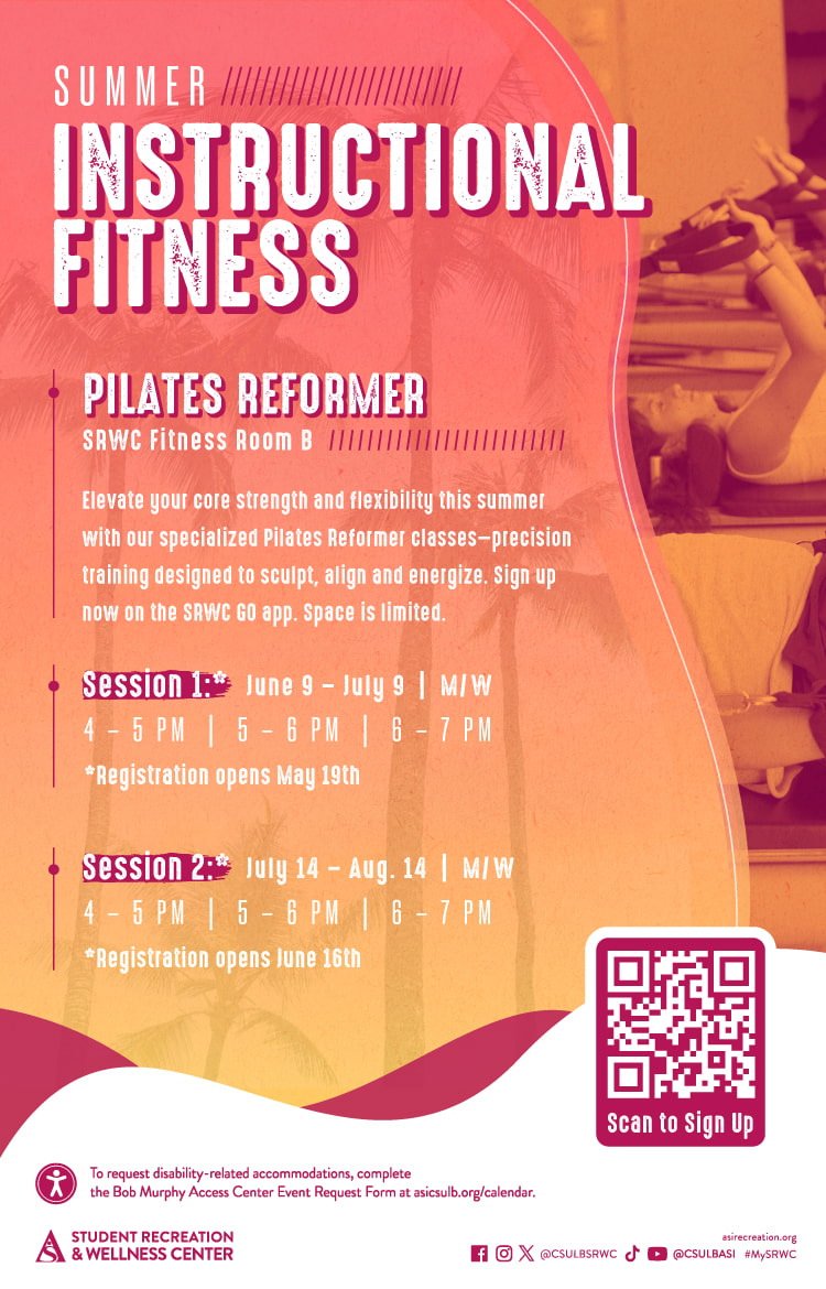 Instructional Fitness Class Summer Instructional Fitness: Pilates Reformer <!-- Wuenderball is the perfect one-hour double workout, combining high-intensity cardio with muscle and core conditioning! Participants utilize an exercise ball, to engage different muscle groups and get in shape quickly. --> Various Dates Various Times SRWC Fitness Room B Session 1: June 9 - July 9 […]