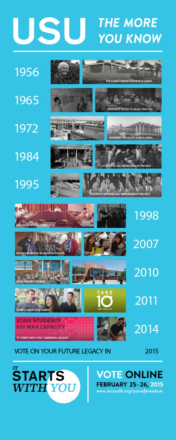 It Starts with You: The 2010s were all about assessment. Starting in 2011, ASI conducted several studies and assessments to understand the needs of students. In 2015, ASI held a referendum vote to raise student fees to fund the renovation and expansion of the USU. Unfortunately, the vote did not pass.