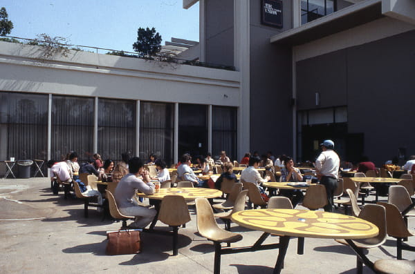 1972: The USU opened under the leadership of then Union Director, Frank Noffke. Edward A. Killingsworth, renowned architect, designed the student union. He believed in “the importance of space”; his work reflects airy, light-filled structures inviting the outdoors in. The building provided over 148,000 square feet of facilities for students, faculty, staff, and guests of LBSU with amenities such as bowling, billiards, music listening lounge, food vendors, and other student services.